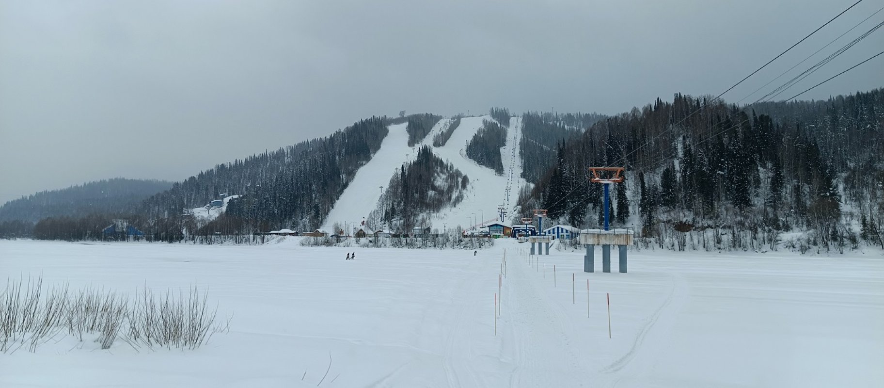 2025-02-12У подножия трассы Слалом начинается трасса для беговых лыж вдоль дамбы реки Томь.